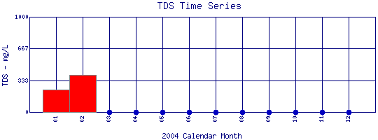 Total Dissolved Solids Time Series for 2004 Boulder Creek above WW Plant |