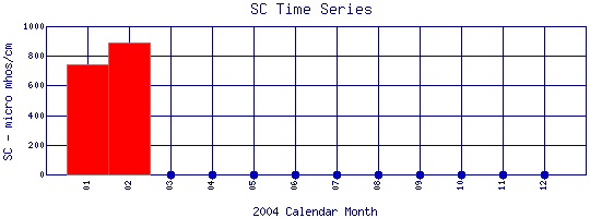 Specific Conductance Time Series for 2004 Boulder Creek Below Coal Creek |