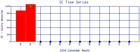 Specific Conductance Time Series for 2004 Coal Creek Above Boulder Creek Confluence |