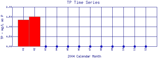 Total Phosphate Time Series for 2004 Coal Creek Above Boulder Creek Confluence |