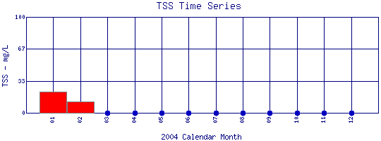 Total Suspended Solids Time Series for 2004 Coal Creek Above Boulder Creek Confluence |