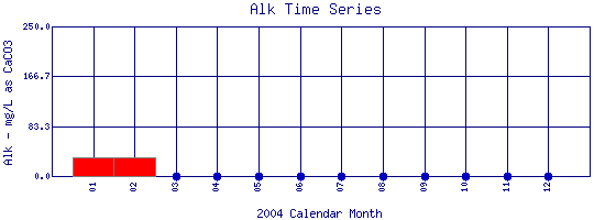 Total Alkalinity Time Series for 2004 Como Creek where it enters Lakewood Res. |