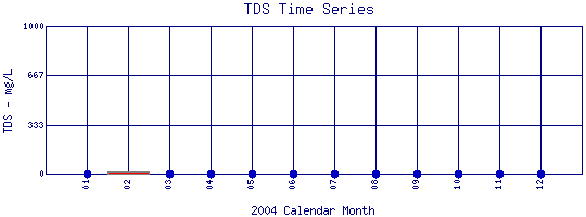 Total Dissolved Solids Time Series for 2004 Silver Lake Pipe outfall in Lakewood Reservoir |