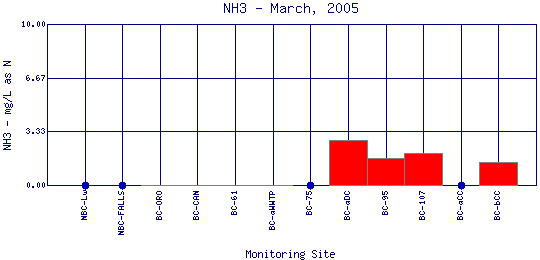 The above map indicates water quality monitoring sites. To view data at a specific site select it from the map with the mouse.