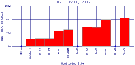 Alkalinity refers to how well a water body can neutralize acids. Alkalinity measures the amount of alkaline compounds in water, such as carbonates (CO3 2-), bicarbonates (HCO3 -), and hydroxides (OH-). These compounds are natural buffers that can remove excess hydrogen ions that have been added from sources such as acid rain or acid mine drainage. Alkalinity mitigates or relieves metals toxicity by using available HCO3 - and CO3 2- to take metals out of solution, thus making it unavailable to fish. Alkalinity is affected by the geology of the watershed; watersheds containing limestone will have a higher alkalinity than watersheds where granite is predominant. The Boulder Creek Watershed is composed primarily of granite rocks, thus the water has a lower alkalinity content.