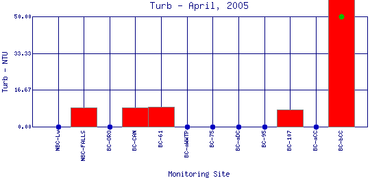 The above map indicates water quality monitoring sites. To view data at a specific site select it from the map with the mouse.