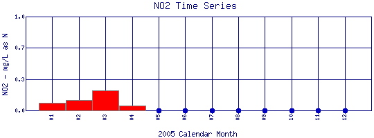 Nitrite Time Series for 2005 Boulder Creek at 107th St |