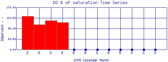 Select on the parameter name to view all DO Percent of Saturation time series plots on the basin map. Select on the table date to view stream DO Percent of Saturation profiles observed on that date. Select here to view all parameters at this site.