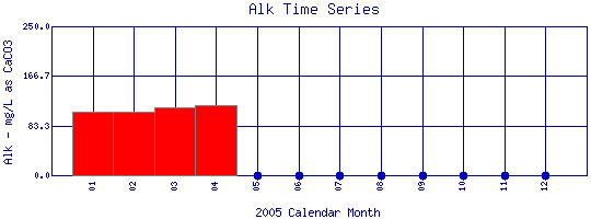Total Alkalinity Time Series for 2005 Boulder Creek at 95th St |