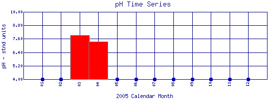 pH Time Series for 2005 Boulder Creek at Orodell |