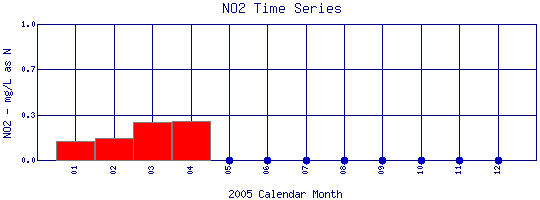 Nitrite Time Series for 2005 Boulder Creek above Dry Creek |