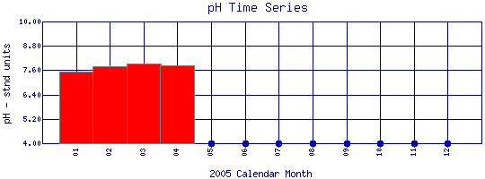 pH Time Series for 2005 Boulder Creek above Dry Creek |