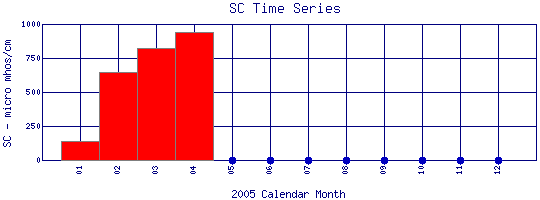 Specific Conductance Time Series for 2005 Boulder Creek Below Coal Creek |