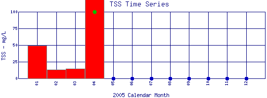 Total Suspended Solids Time Series for 2005 Boulder Creek Below Coal Creek |