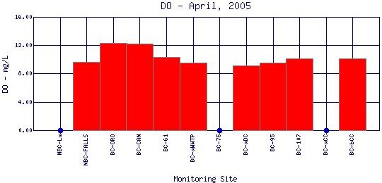 Longitudinal Dissolved Oxygen Profiles for April, 2005