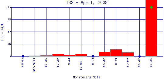 Longitudinal Total Suspended Solids Profiles for April, 2005