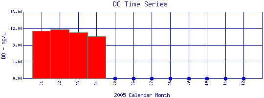 Dissolved Oxygen Time Series for 2005 Boulder Creek at 107th St |