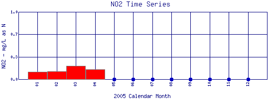 Nitrite Time Series for 2005 Boulder Creek at 95th St |
