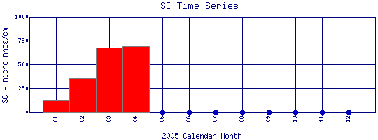 Specific Conductance Time Series for 2005 Boulder Creek at 95th St |