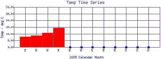 Water Temperature Time Series for 2005 Boulder Creek at 95th St |