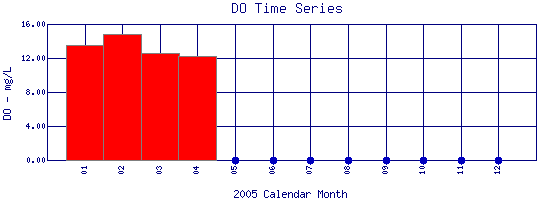 Dissolved Oxygen Time Series for 2005 Boulder Creek at Eben G. Fine Park |