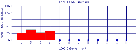 Total Hardness Time Series for 2005 Boulder Creek at Eben G. Fine Park |