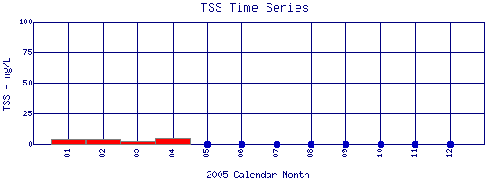 Total Suspended Solids Time Series for 2005 Boulder Creek at Eben G. Fine Park |