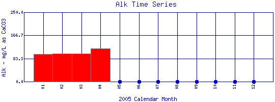 Total Alkalinity Time Series for 2005 Boulder Creek above Dry Creek |