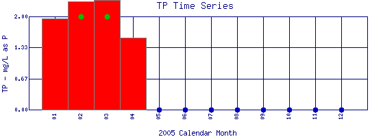 Total Phosphate Time Series for 2005 Boulder Creek above Dry Creek |