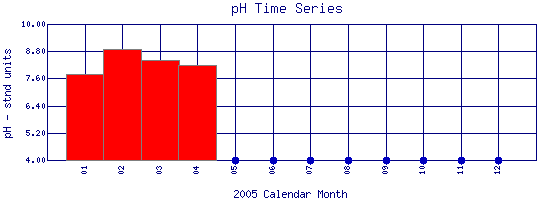 pH Time Series for 2005 Boulder Creek above WW Plant |