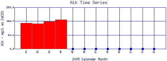 Total Alkalinity Time Series for 2005 Boulder Creek Below Coal Creek |