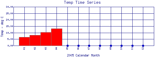 Water Temperature Time Series for 2005 Boulder Creek Below Coal Creek |