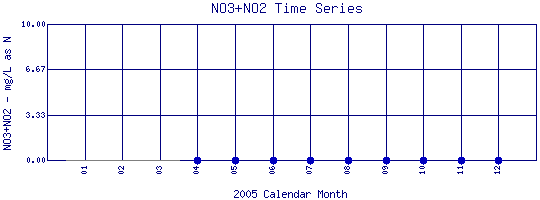 Nitrate + Nitrite Time Series for 2005 Como Creek where it enters Lakewood Res. |