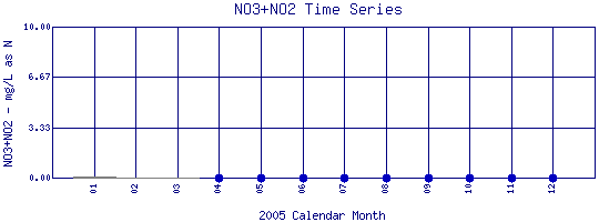 Select on the parameter name to view all Nitrate + Nitrite time series plots on the basin map. Select on the table date to view stream Nitrate + Nitrite profiles observed on that date. Select here to view all parameters at this site.