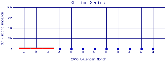 Specific Conductance Time Series for 2005 Silver Lake Pipe outfall in Lakewood Reservoir |