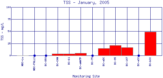 Longitudinal Total Suspended Solids Profiles for January, 2005