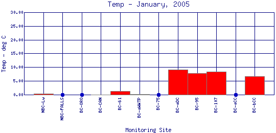 Select on the parameter name to view more detailed information for that parameter in this month. Select on the site name to view data time series observed at that station. For monitoring site locations see site location map.