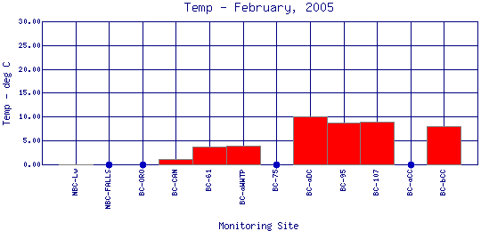 The above map indicates water quality monitoring sites. To view data at a specific site select it from the map with the mouse.