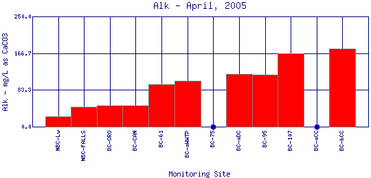 Alkalinity refers to how well a water body can neutralize acids. Alkalinity measures the amount of alkaline compounds in water, such as carbonates (CO3 2-), bicarbonates (HCO3 -), and hydroxides (OH-). These compounds are natural buffers that can remove excess hydrogen ions that have been added from sources such as acid rain or acid mine drainage. Alkalinity mitigates or relieves metals toxicity by using available HCO3 - and CO3 2- to take metals out of solution, thus making it unavailable to fish. Alkalinity is affected by the geology of the watershed; watersheds containing limestone will have a higher alkalinity than watersheds where granite is predominant. The Boulder Creek Watershed is composed primarily of granite rocks, thus the water has a lower alkalinity content.