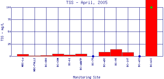 Longitudinal Total Suspended Solids Profiles for April, 2005