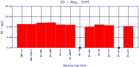 Longitudinal Dissolved Oxygen Profiles for May, 2005