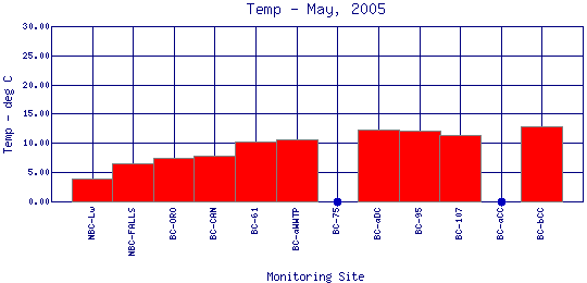 Longitudinal Water Temperature Profiles for May, 2005