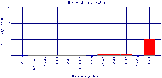The above map indicates water quality monitoring sites. To view data at a specific site select it from the map with the mouse.