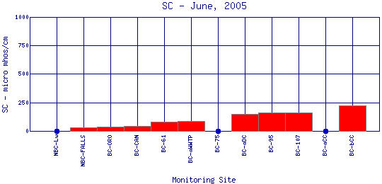 Longitudinal Specific Conductance Profiles for June, 2005
