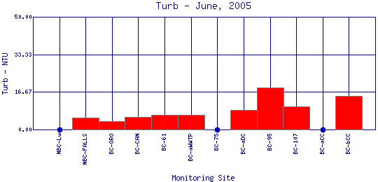 The above map indicates water quality monitoring sites. To view data at a specific site select it from the map with the mouse.