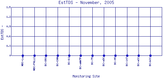 The above map indicates water quality monitoring sites. To view data at a specific site select it from the map with the mouse.