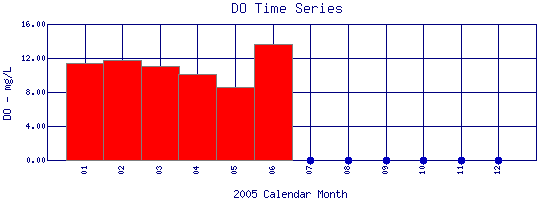 Dissolved Oxygen Time Series for 2005 Boulder Creek at 107th St |