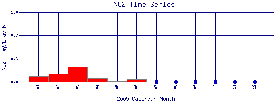 Nitrite Time Series for 2005 Boulder Creek at 107th St |