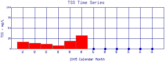 Total Suspended Solids Time Series for 2005 Boulder Creek at 107th St |