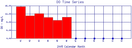 Dissolved Oxygen Time Series for 2005 Boulder Creek at 61st St. |